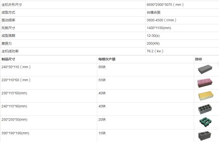 一、YH15-20全自動砌塊成型機主要參數(shù):