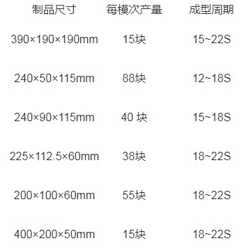 三、全自動(dòng)15-20歐版仿石PC磚機(jī)產(chǎn)能表: